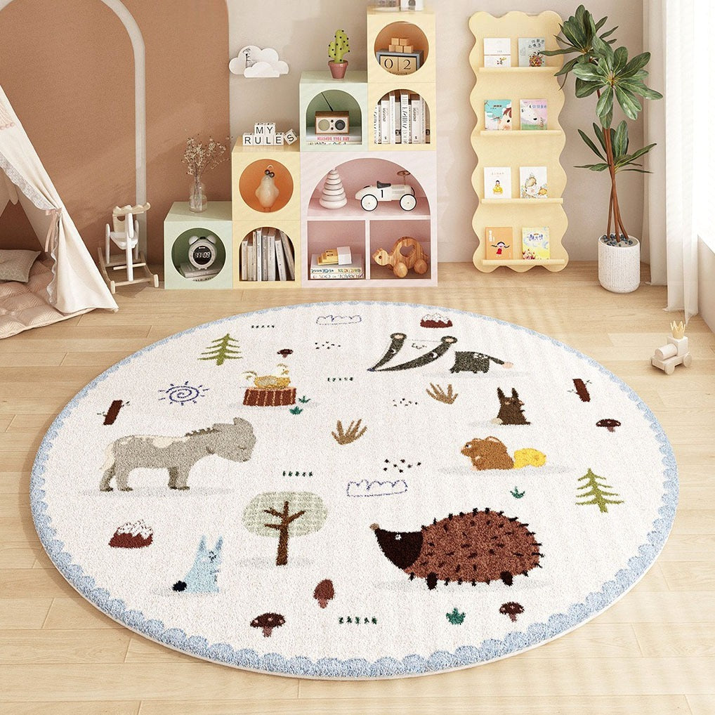 Our super soft CoCo Kids Round Soft Rug 120cm. The floor mats for kids are made of super soft fabric, which gives a nice finish to them. The Cotton&Linen nonslip backing is safer for the kids.